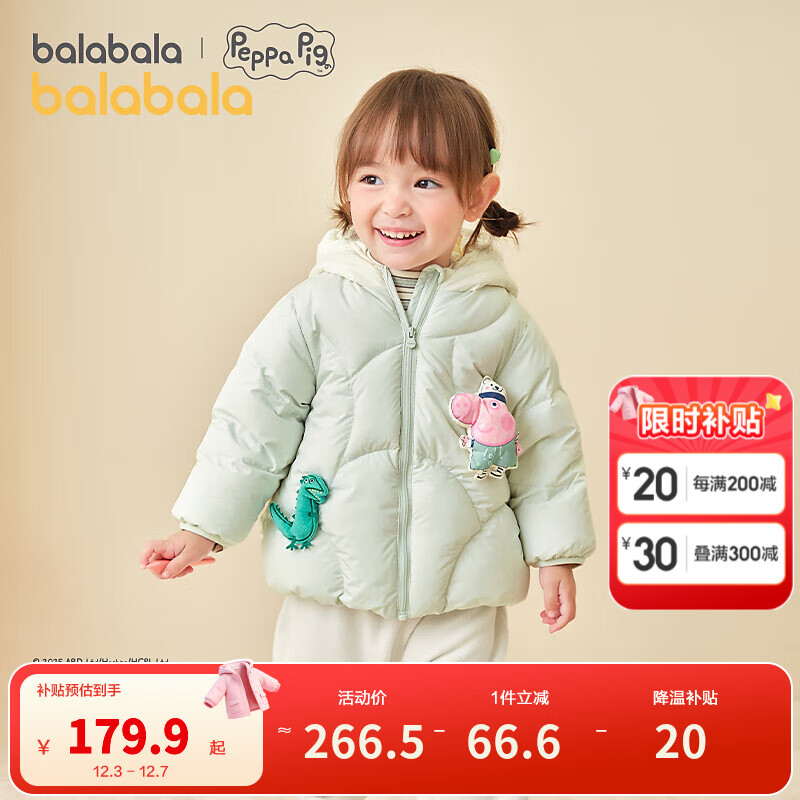包邮 巴拉巴拉儿童羽绒服宝宝男童女童童装加厚保暖萌趣户外防风冬季潮 粉绿A41418-白鸭绒 90 (充绒量68g)